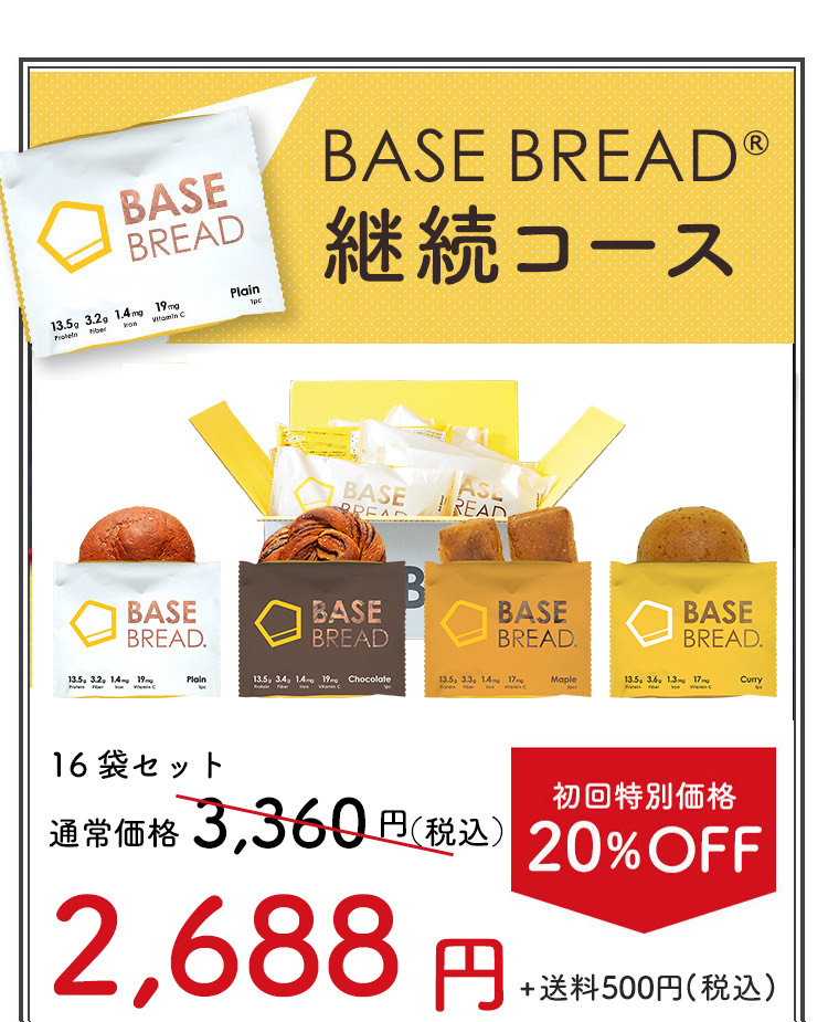 良いことづくしなBASE BREADですが、継続コースが初回限定20%OFF!